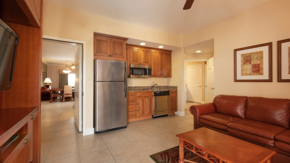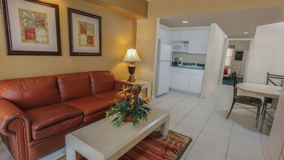 The exquisitely decorated One-Bedroom Villa at Westgate Town Center offers spacious accommodations along with a variety of in-room amenities. Featuring a king bed, queen sleeper sofa in the living area and a kitchenette, the whole family will have their own space and then some.