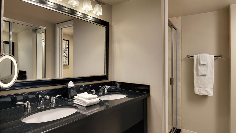The 900 sq. ft. One Bedroom Villa at Westgate Las Vegas provides an ideal setting for a memorable vacation or business trip. Complete with views of the Las Vegas Strip or the serene Las Vegas Country Club, the One Bedroom Villa features a luxurious king bed, a separate Kitchen/Dining Room and Living Room, two 60" LED Smart TVs, and a luxurious bathroom featuring a rain head shower system with a two-person jetted tub. Note: No washer/dryer included.