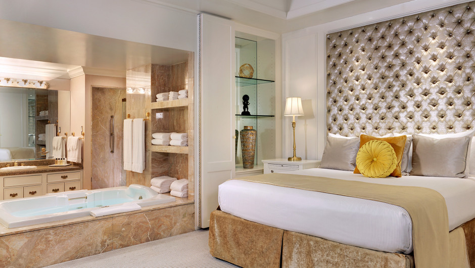 Step into an adults-only fantasy in The Bedroom. With a jetted tub, mood lighting, private balcony, and signature round bed, this 918-square-foot suite is built for couples who want their Vegas experience to be unforgettable and romantic.