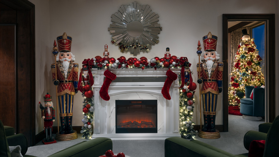 Step into a 1,500-square-foot winter wonderland where it’s Christmas every day! Three fully decked-out Christmas trees, twinkling lights, and lush garlands fill the space with holiday magic. Cozy up by the electric fireplace or toast to the season at the festive bar area. For a playful twist, discover two “Elf on the Shelf” themed bathrooms! With a spacious living area, dining table, and cozy holiday ambiance, this suite is the ultimate year-round yuletide retreat.