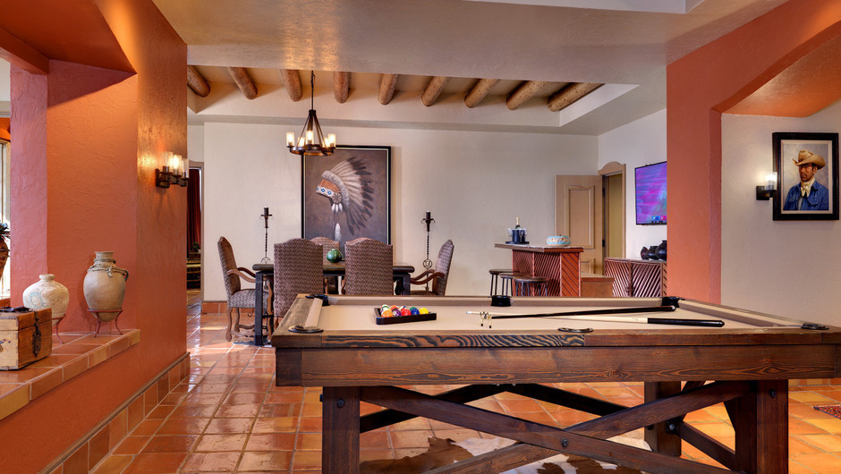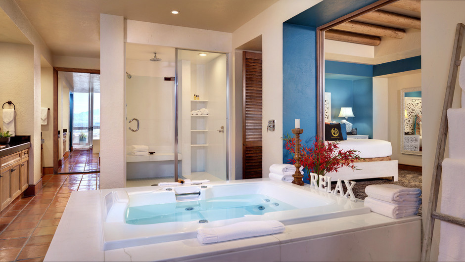 Terracotta tones, handcrafted details, and desert accents bring the Santa Fe Suite to life. It's a warm, welcoming space that feels like an artist’s retreat with a Southwestern soul—just with more neon.