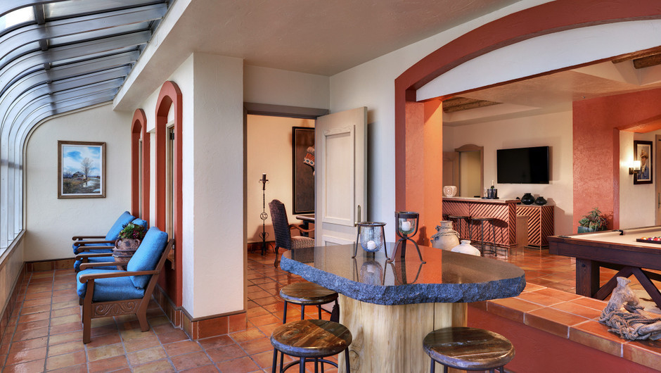 Imagine a private clubhouse in the sky. The Country Club Suite features rich wood accents, leather details, and golf-inspired décor, perfect for those who appreciate timeless style and tailored luxury.