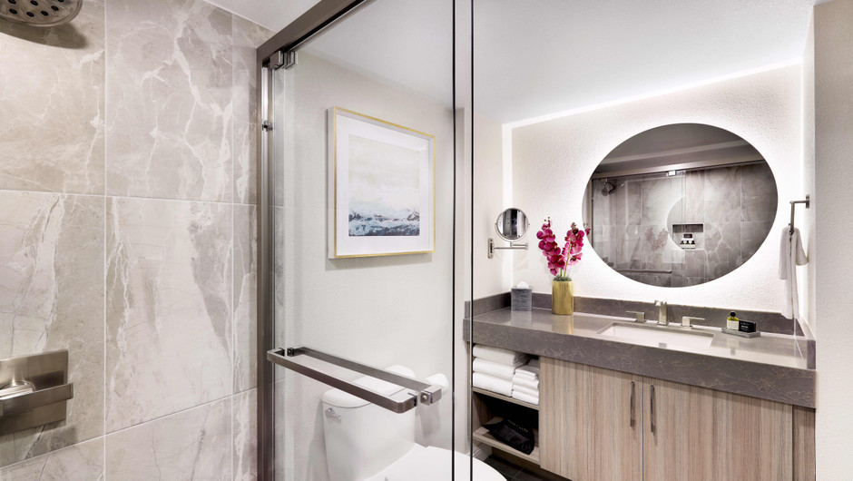 The extravagance continues to the spacious bathrooms that feature oversized mirrors, lit make-up mirrors, in-shower shaving mirrors and towel caddies. Relax in your oversized tub/shower combination as you prepare for the Las Vegas excitement that lies ahead.